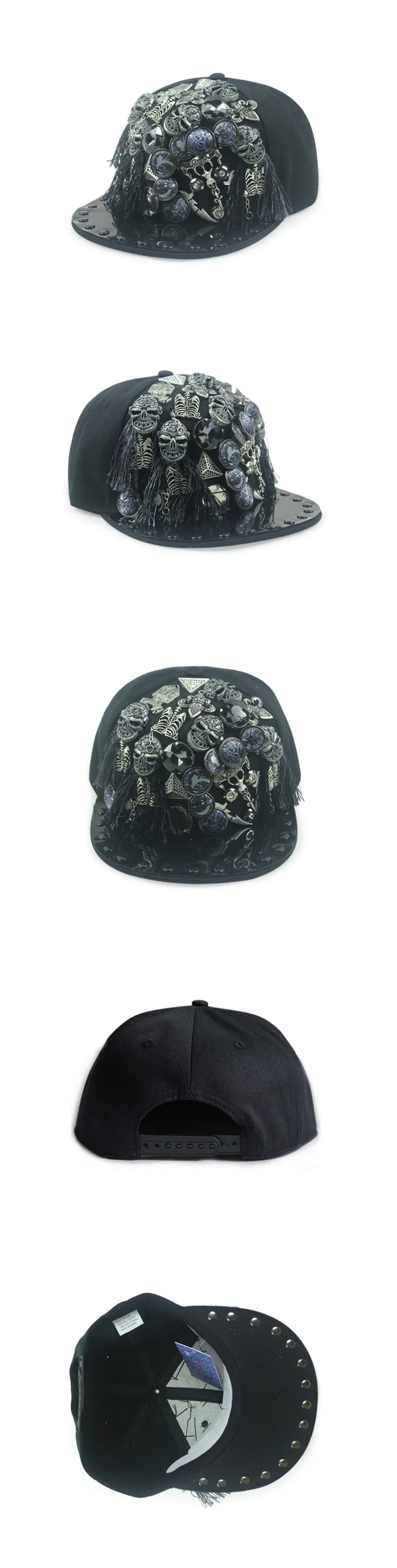 XdanqinX New Personality Trend Hip Hop Caps For Men Women Novelty Headdress Decoration Flat Brim Cap Adjustable Size Couple Hat
